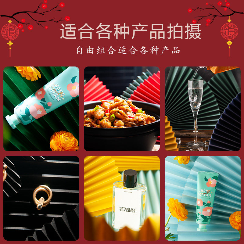 折扇摄影道具国潮风拍照道具彩色扇子中国风美食化妆品摆拍背景纸