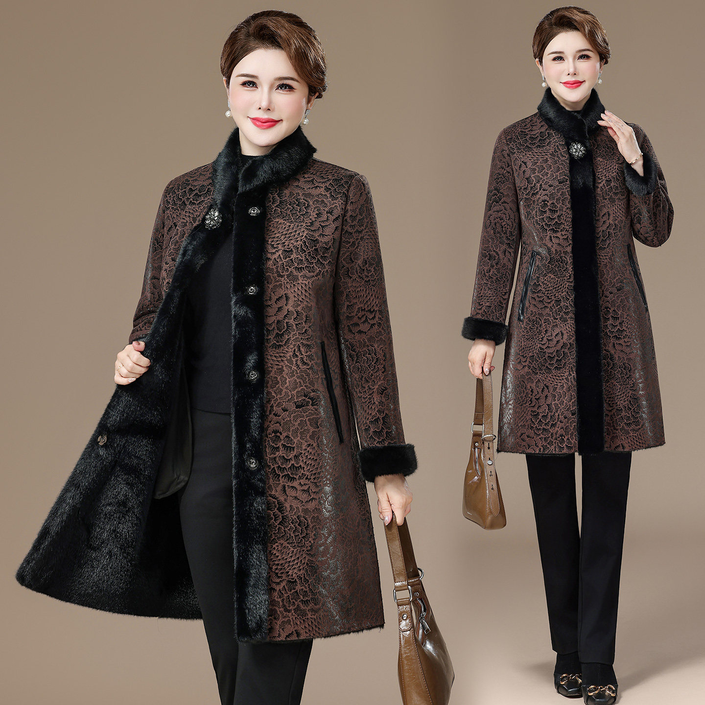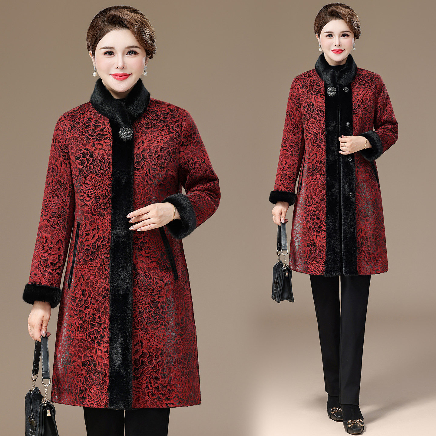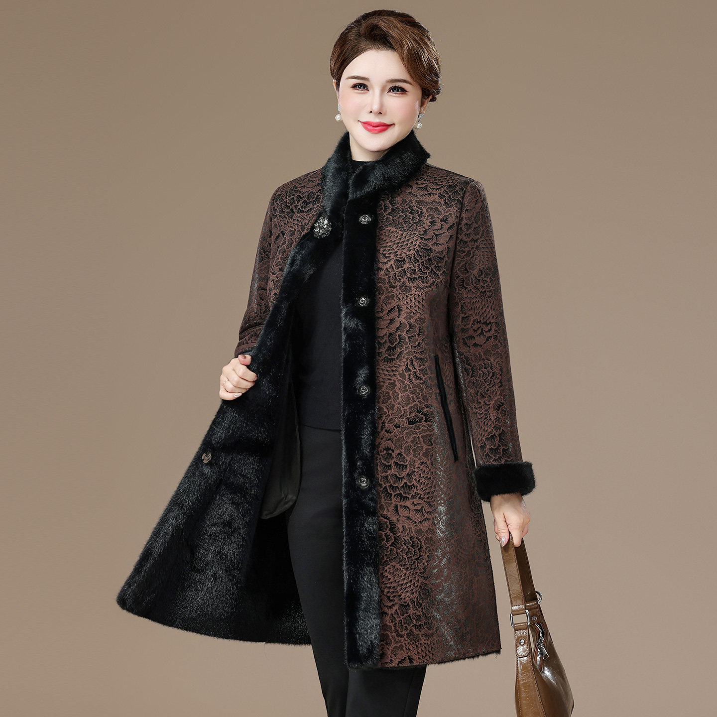 妈妈冬装皮毛一体大衣2025新款中长款中老年女装时尚貂绒皮草外套