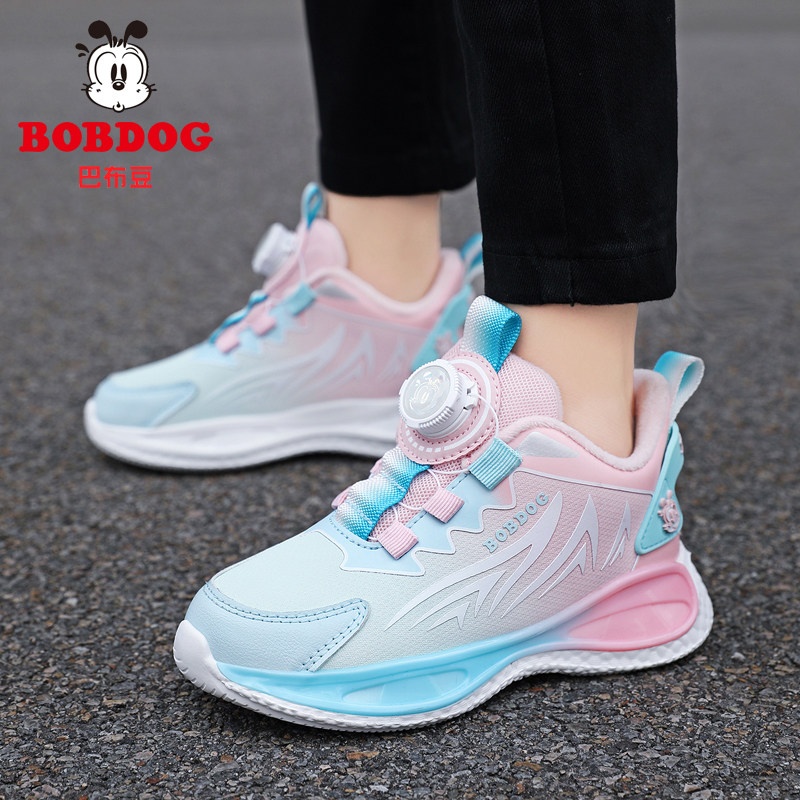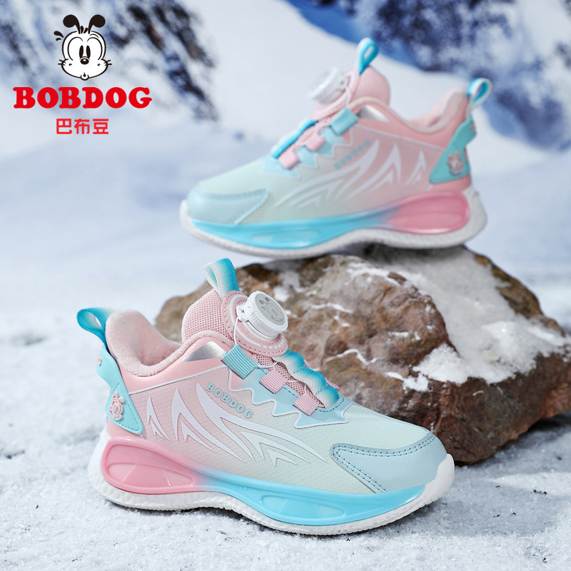 巴布豆女童运动鞋2025秋冬新款加绒保暖女学生跑步鞋子防水防滑