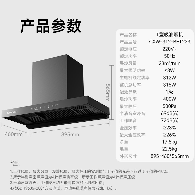 康宝BET223新款抽油烟机挂式智能清洗家用厨房大吸力官方旗舰店