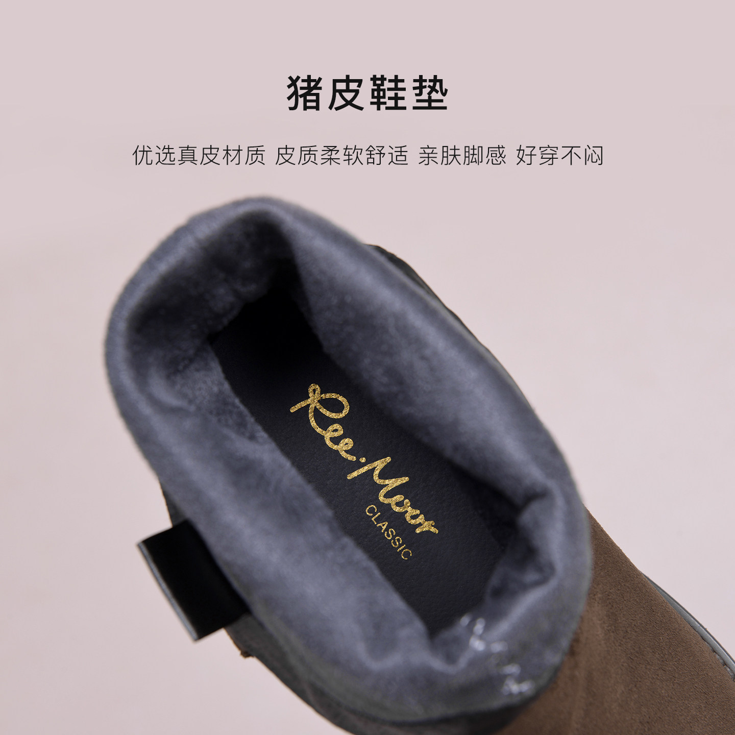 牛皮~骄屿复古圆头雪地靴加绒保暖毛毛棉靴两穿平底棕色勃肯短靴
