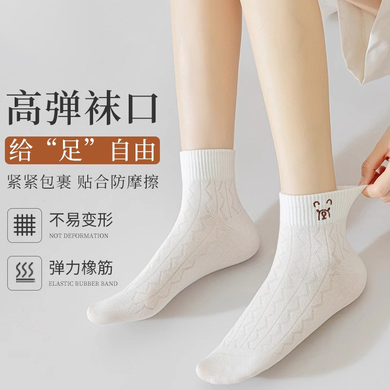 诸暨袜子女士春秋季短筒袜秋冬可爱中筒袜月子袜小熊短袜防臭吸汗