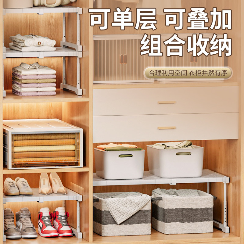 柜子分层架隔板衣柜伸缩置隔断物架收纳神器鞋柜隔层置物衣物橱柜