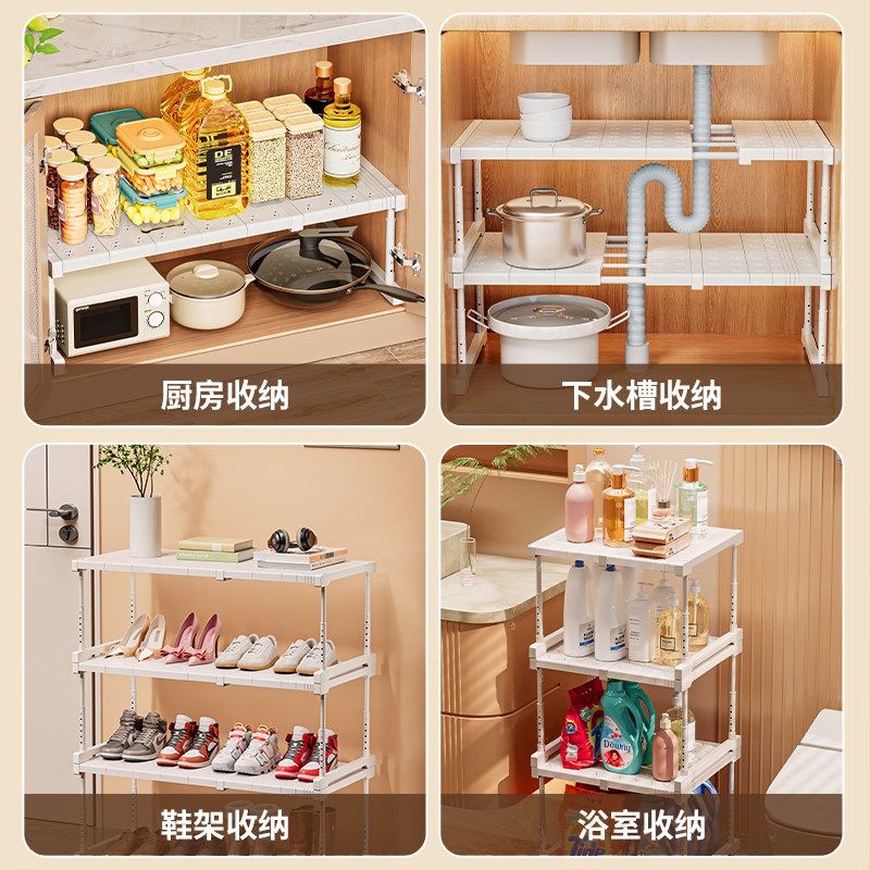 家用收纳架免安装分层隔板可伸缩下挂式悬挂拖鞋置物架省空间神器