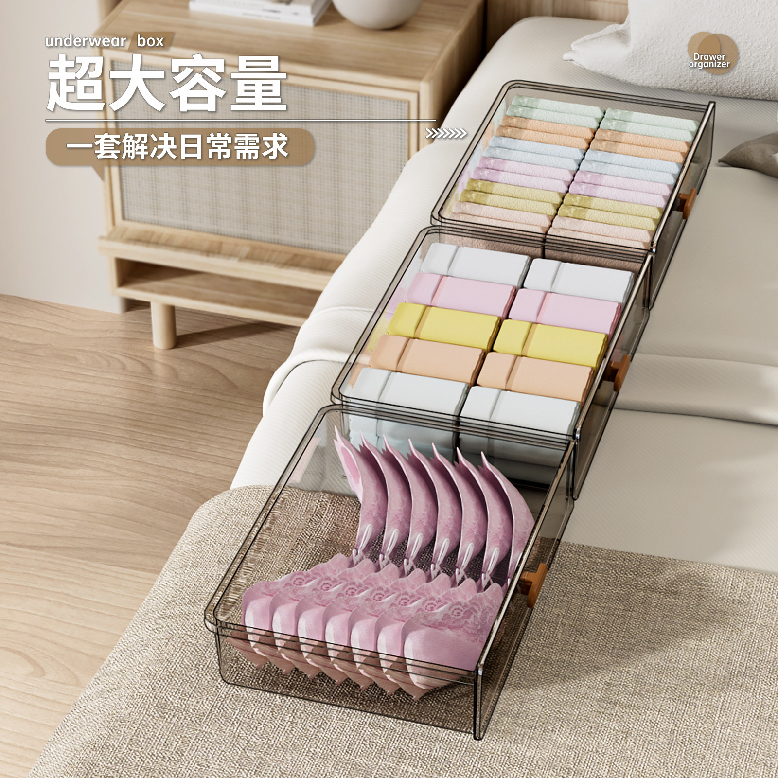 内衣收纳盒抽屉式家用衣柜内裤袜子三合一分隔神器贴身衣物柜子