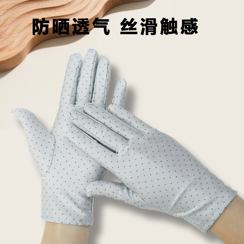 夏季防晒手套女士春秋薄款礼仪氨纶弹力珠宝防紫外线黑色波点