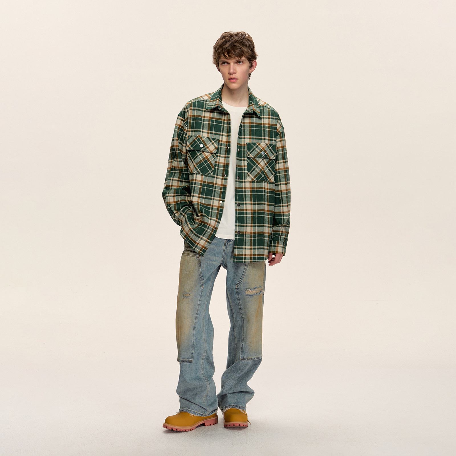LR MADE 25AW T形袋盖 重磅羊毛 复古氛围感格纹磨毛长袖格子衬衫