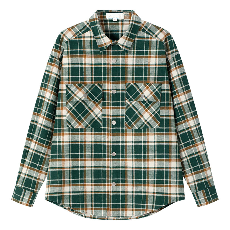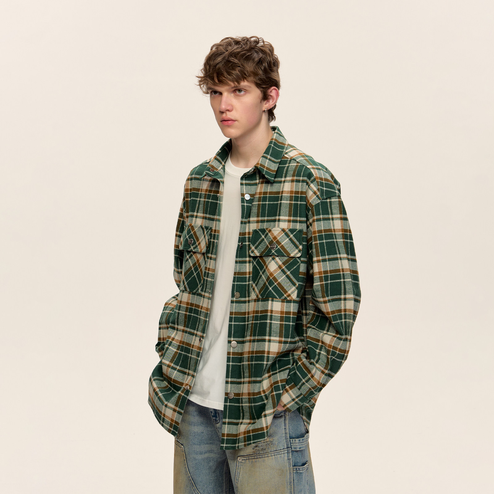 CLIMAX VISION复古绿格纹休闲工装长袖衬衫外套松弛感慵懒风衬衣