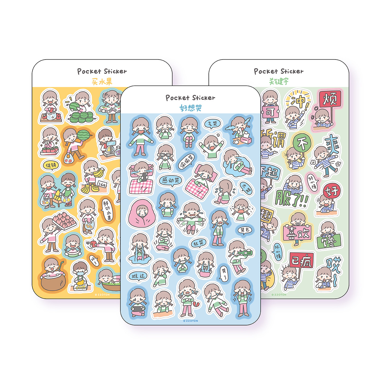 卓大王【阿卓口袋贴纸】加油不舒服关键字水果爱下厨想哭日常手帐