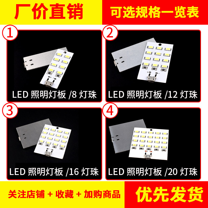8/12/16/20灯珠LED照明灯板 地摊灯 应急灯小夜灯USB移动灯铝基板