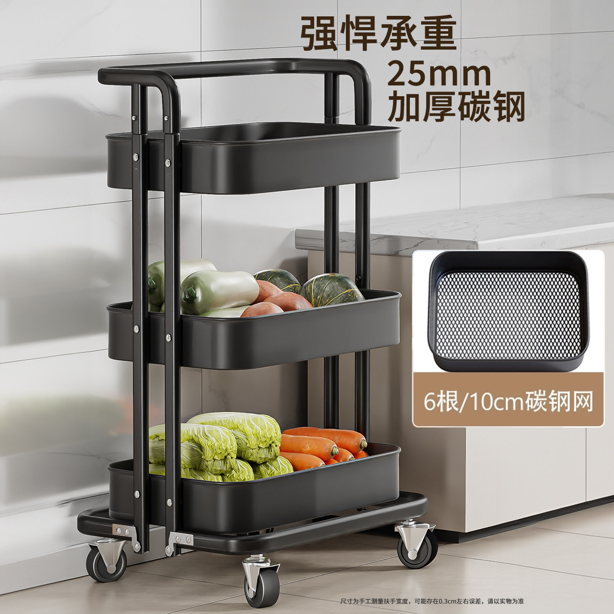 加厚小推车碳钢置物架厨房客厅落地移动卧室多层浴室收纳储物架子