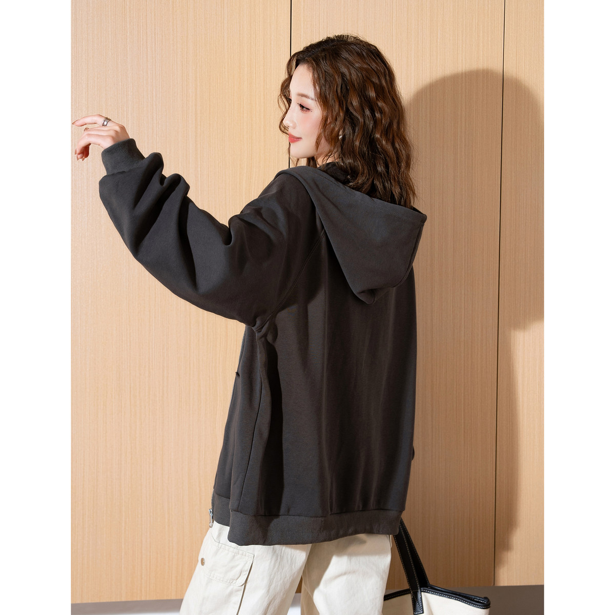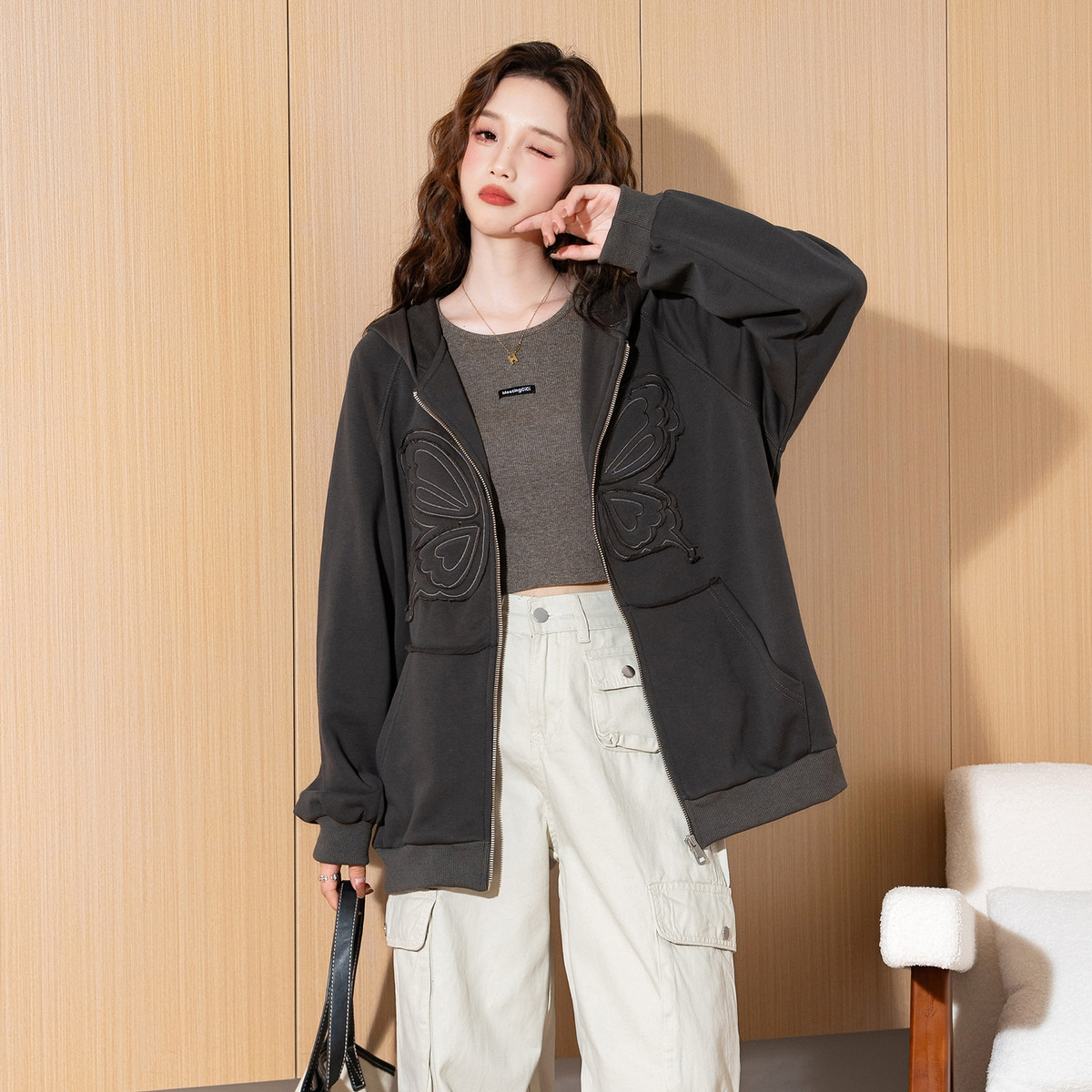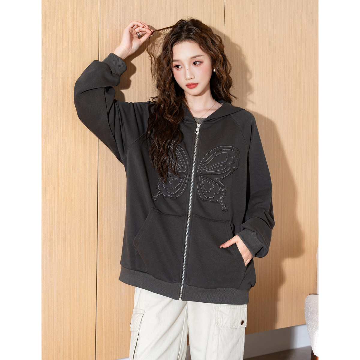 唐狮秋季新款休闲外套女连帽蝴蝶刺绣美式慵懒chic外套上衣流行tu