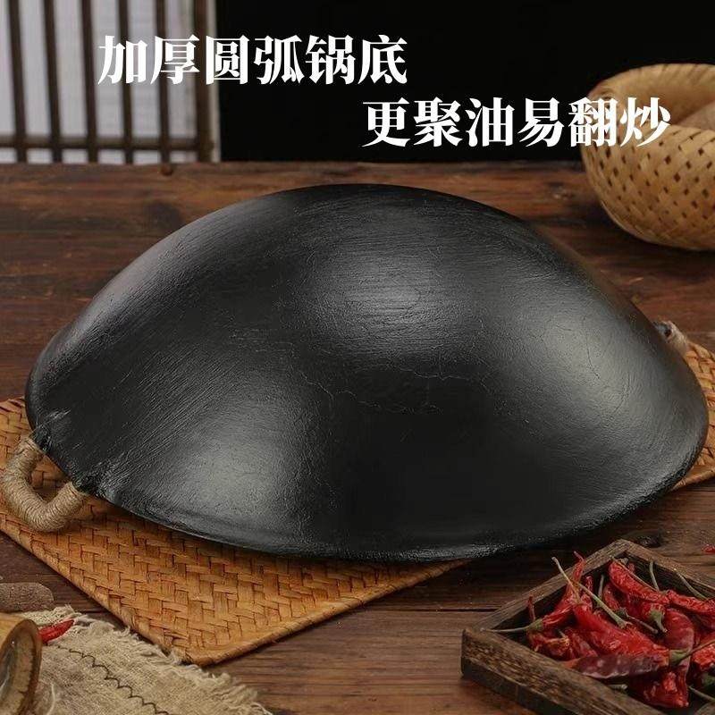 陆川老式铁锅双耳生铁锅传统加厚铸铁锅无涂层炒菜锅电磁炉燃气