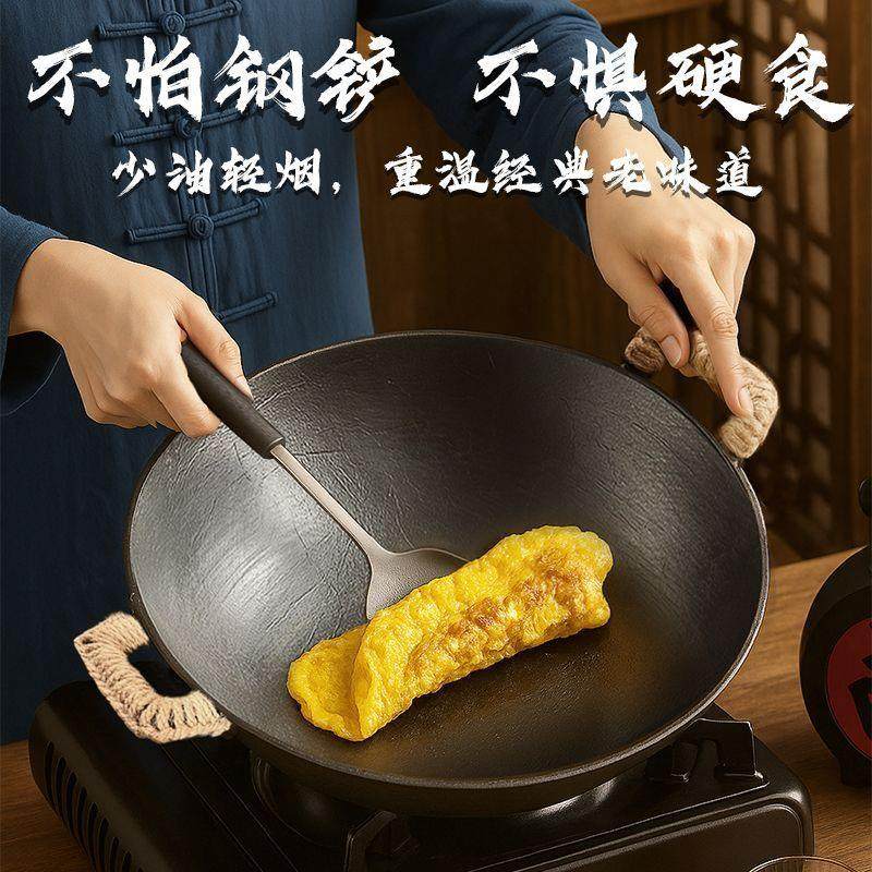 铁锅官方旗舰炒菜锅老式炒锅铁锅家用不粘锅无涂层燃气灶适用