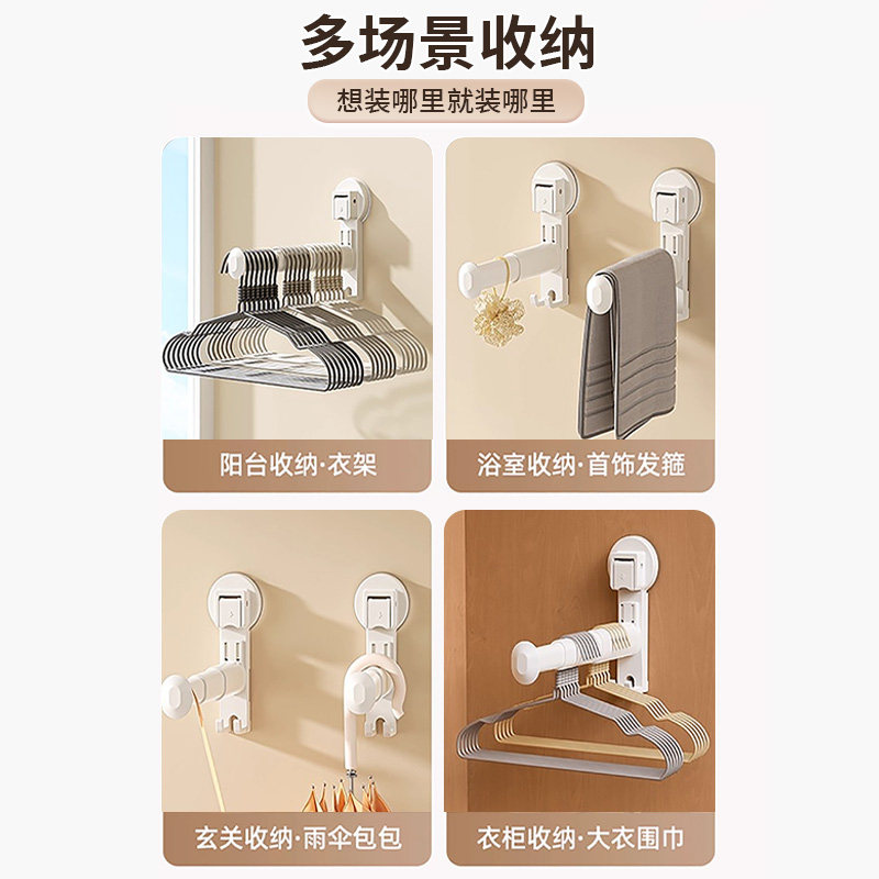 阳台衣架收纳神器挂杆吸盘晾衣架置物架挂墙式挂衣架收纳架免打孔