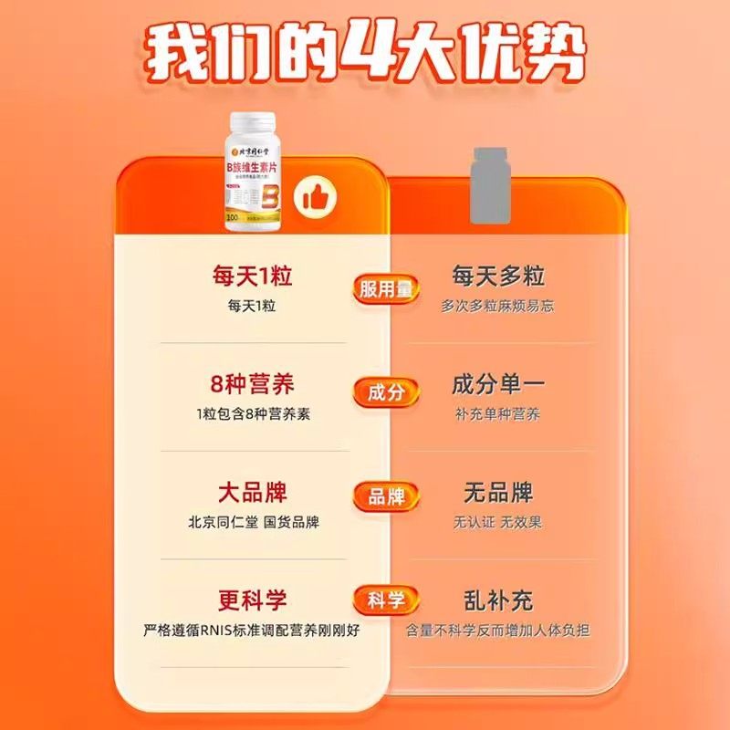 北京同仁堂维生素b族片复合维生素b1b2b6 b12男女士vb补钙多维c片