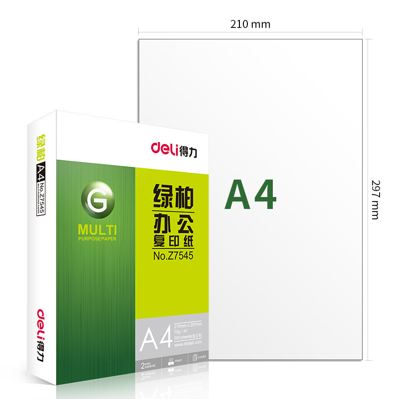 得力绿柏a4纸70g打印纸双面复印纸整箱5包8包装草稿纸白纸办公用