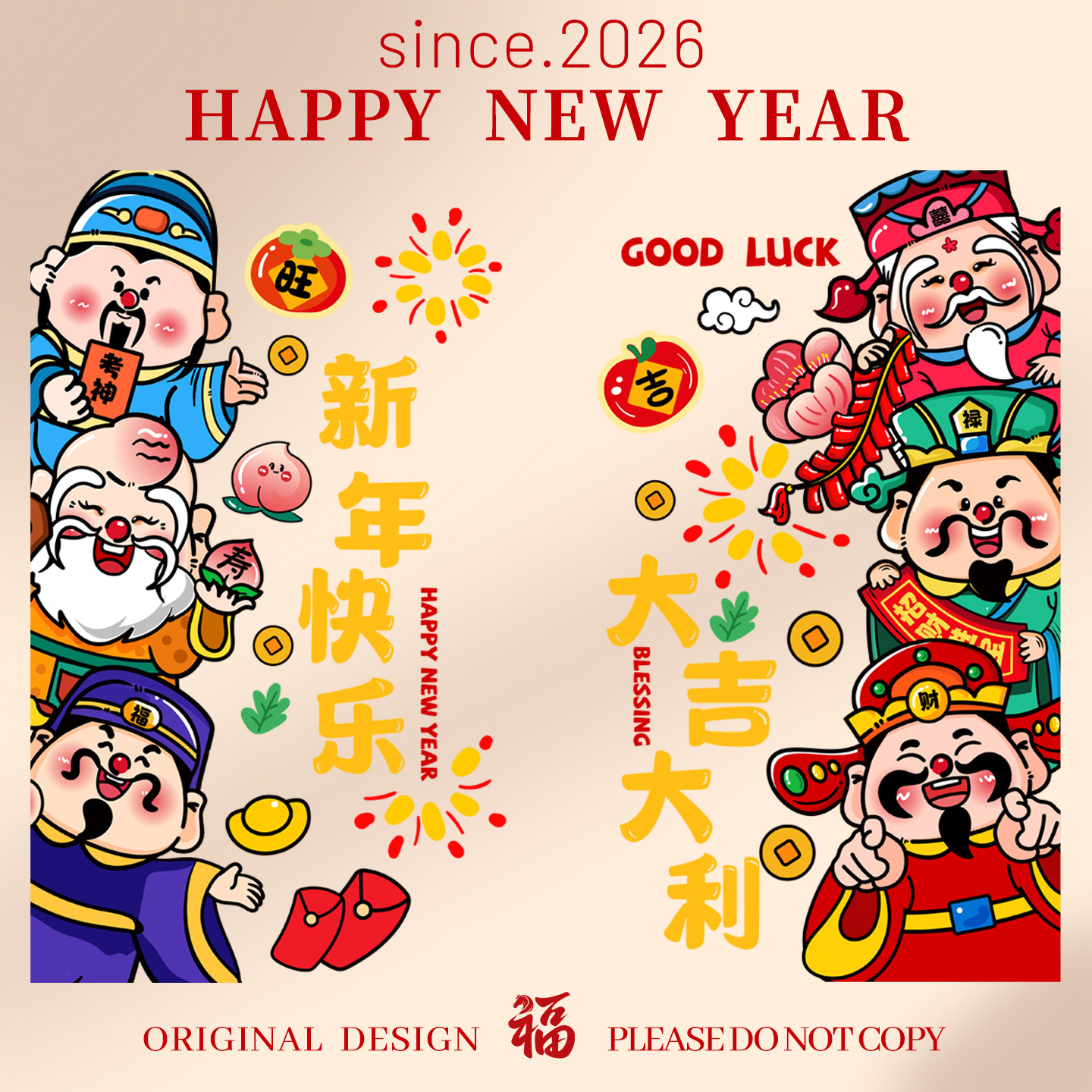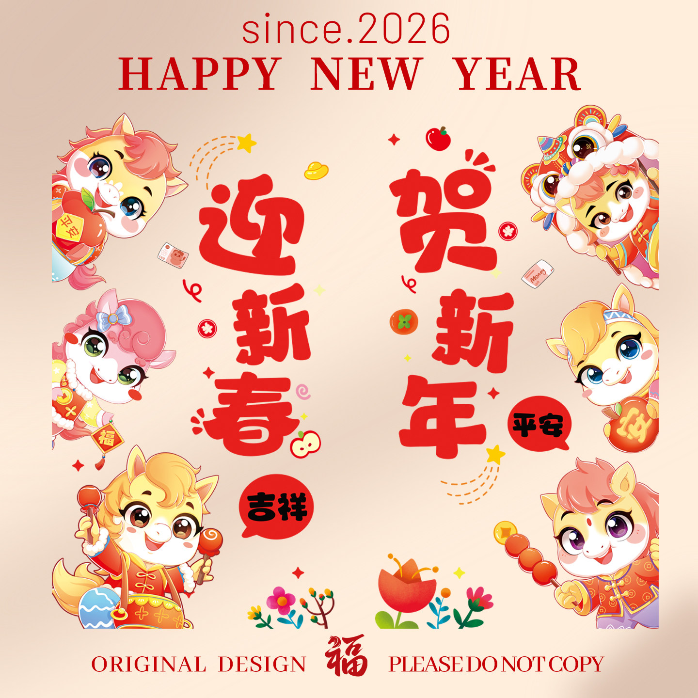 2026马年新款窗花春节静电玻璃门贴纸过年装饰布置新年福字橱窗贴