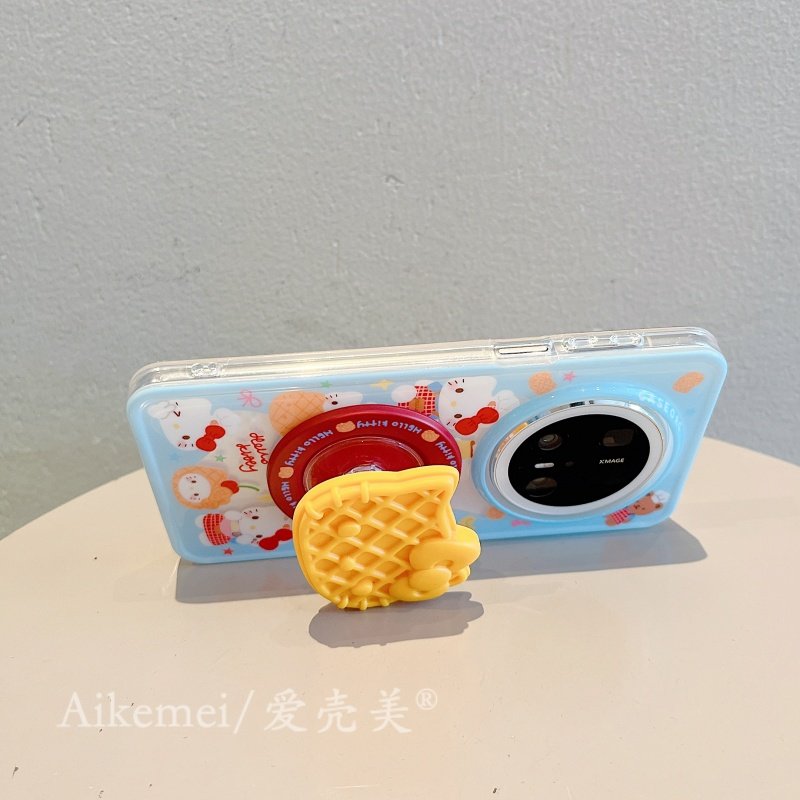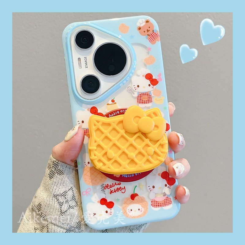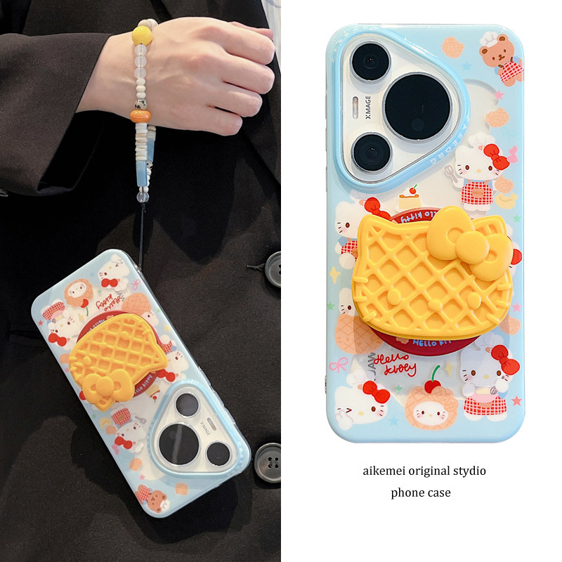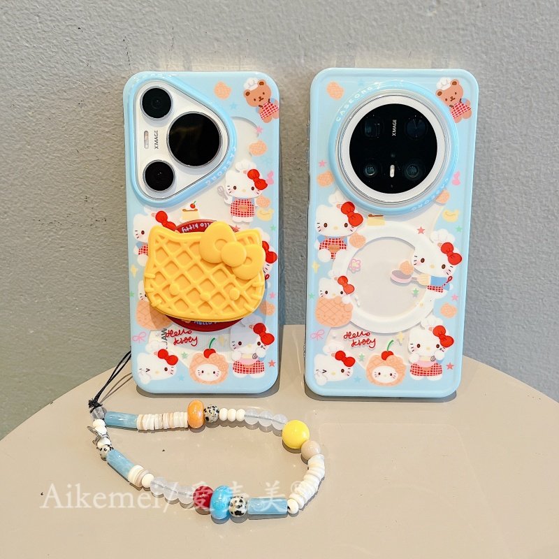 适用华为pura70pro+手机壳可爱卡通华夫饼KT猫磁吸支架Pura70链条挂绳p70pro新款双层mate8070pro+全包防摔女