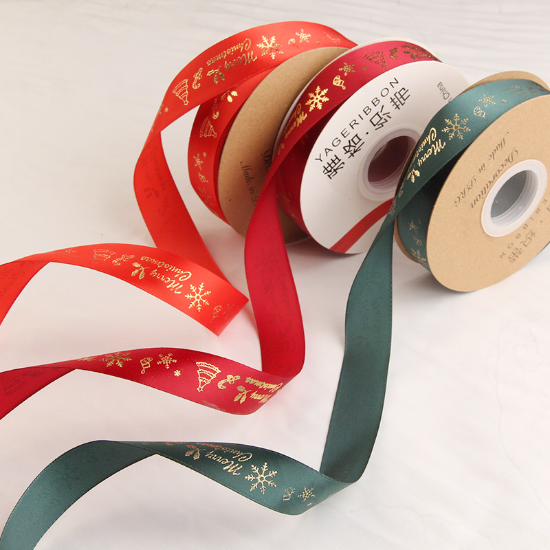 2.5cm圣诞节礼物包装彩带diy材料装饰带鲜花绑带红色缎带绿色绸带
