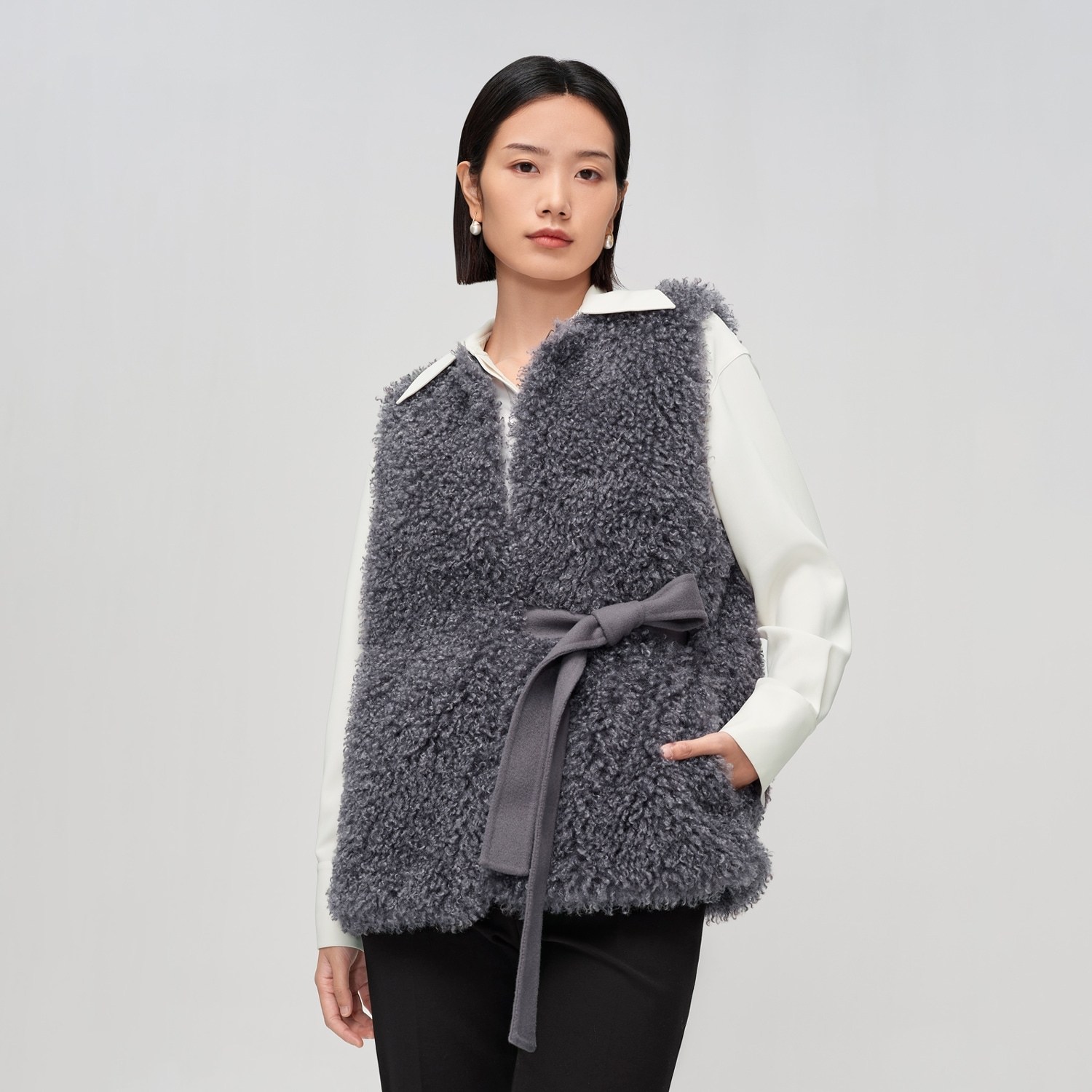OVV秋冬新款女装轻盈立体感系带复合环保背心易搭皮草