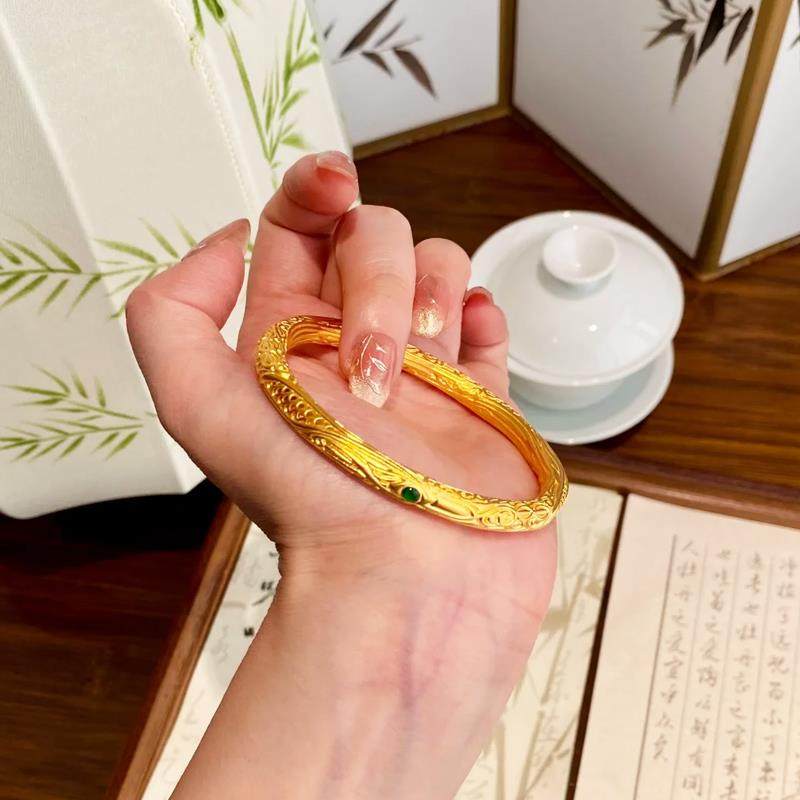 金店同款古法哪咤周边乾坤圈手镯女实心正品越南沙金仿真黄金首饰