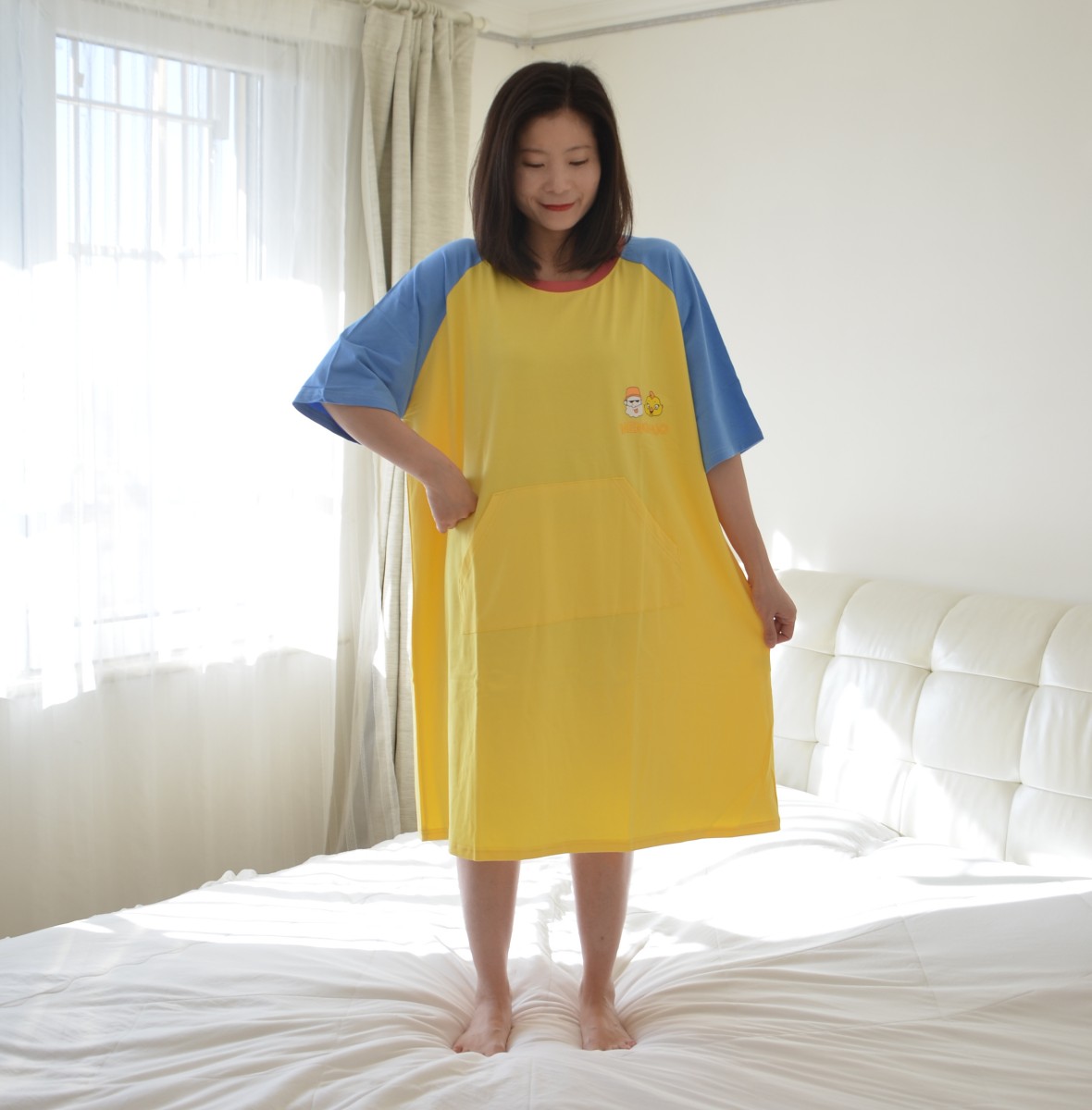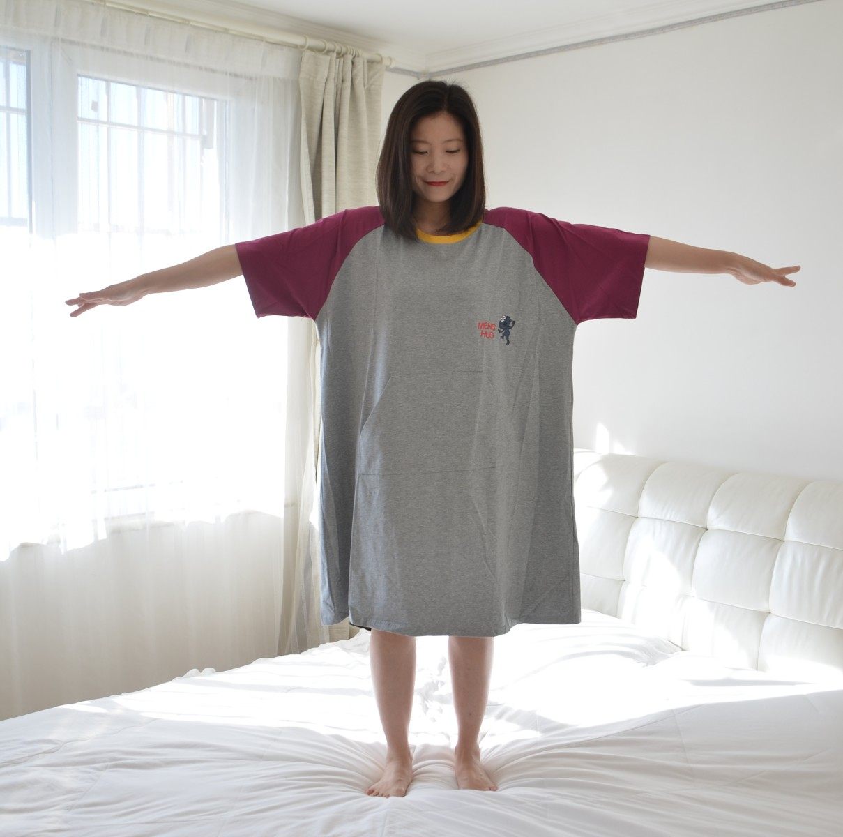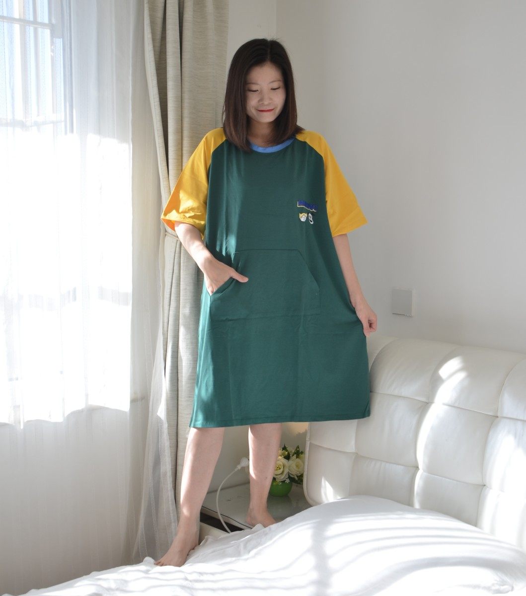 拼色睡裙女夏季薄款莫代尔短袖连衣裙大码宽松圆领家居服睡衣裙子