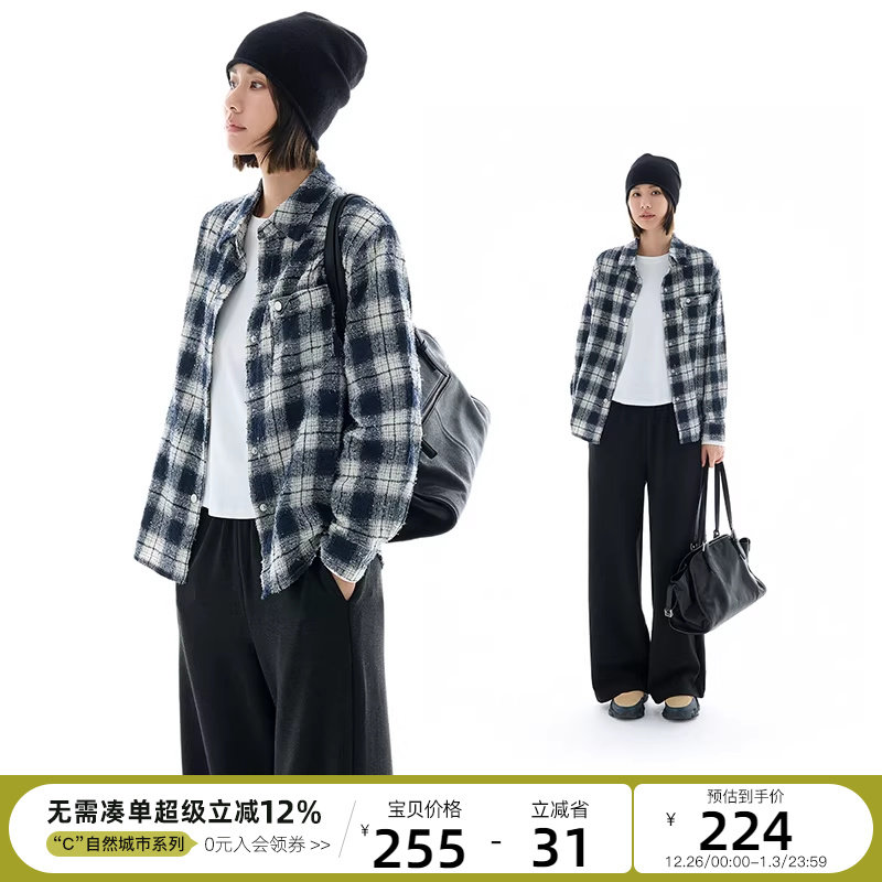 CLOUDSPACE【黑白琴格】流须百搭肌理格纹设计感衬衫2025春秋长袖