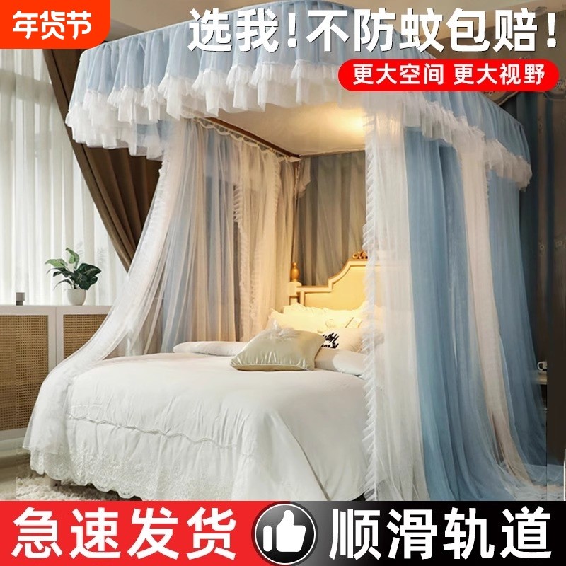 防蚊u型导轨蚊帐家用大床卧室支架杆加粗加厚落地轨道遮光2025年