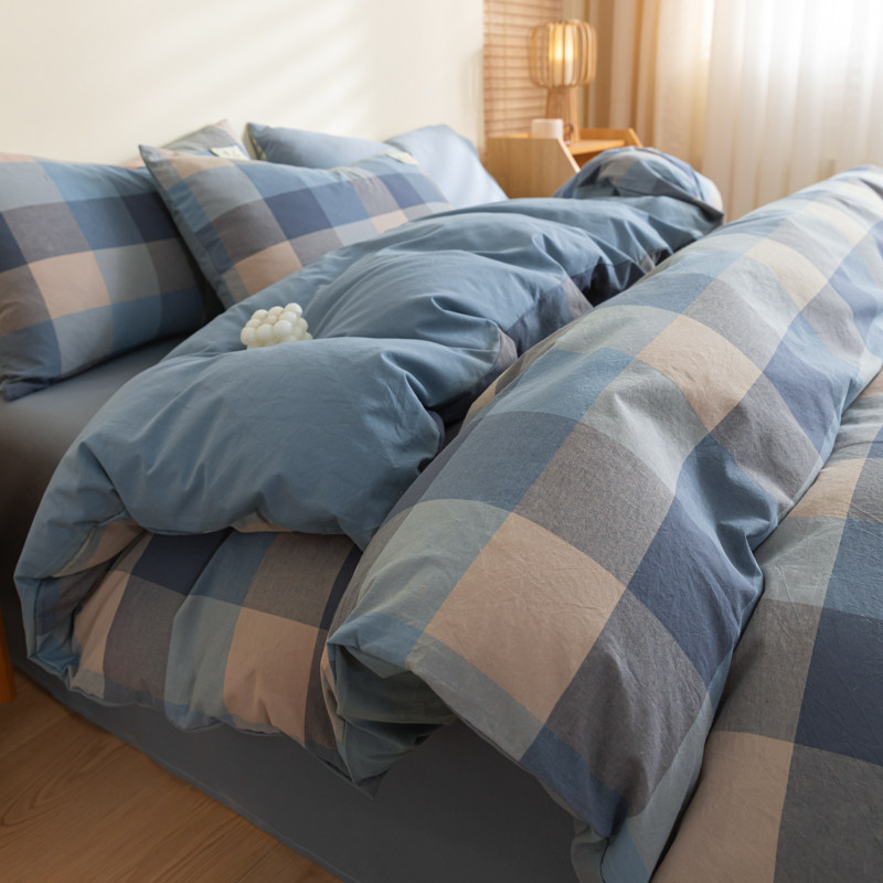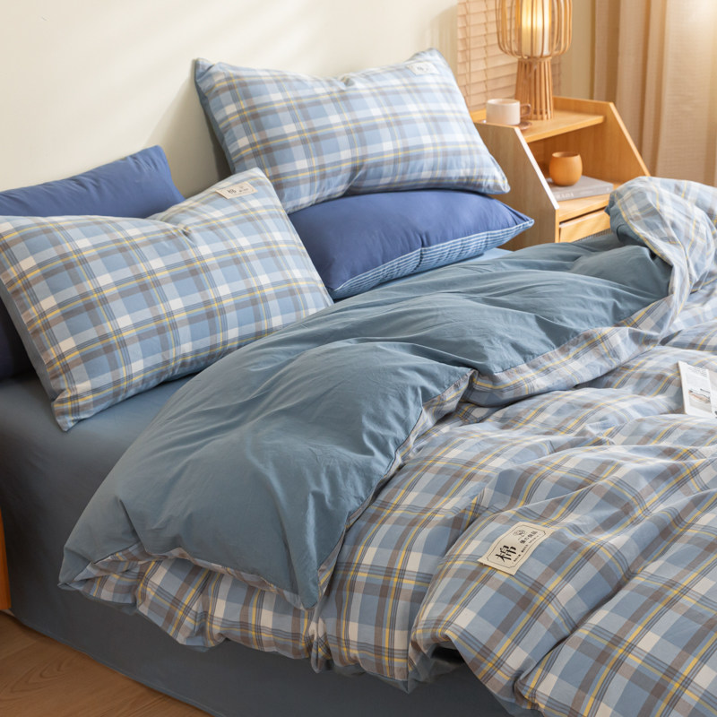 A类水洗棉双层纱四件套被罩非全棉纯棉床单人学生宿舍被套三件套