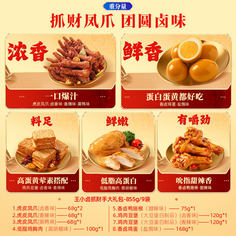 王小卤年货礼盒虎皮凤爪卤味零食春节过年送人解馋夜宵休闲小吃