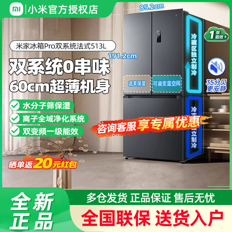 小米米家513LPro双系统冰箱法式四门60cm超薄一级变频除菌净味
