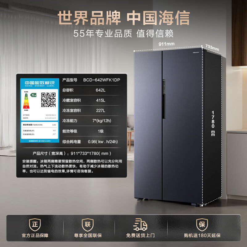 海信642升对开双开门超薄嵌入大容量一级能效家用除菌变频电冰箱