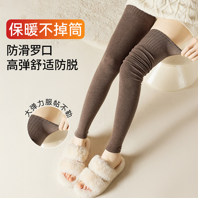 过膝袜子女秋冬羊毛长筒袜加厚保暖护膝大腿袜纯棉压力显瘦高筒袜