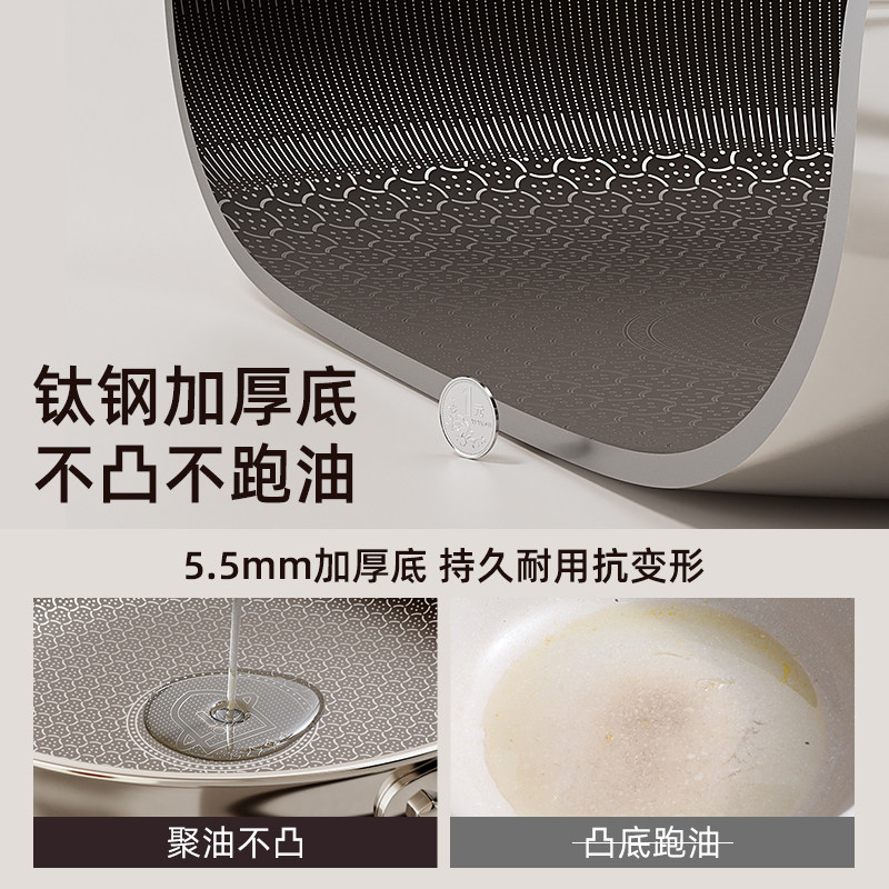 钛红芯控温平底锅不粘锅家用无涂层炒菜煎蛋牛排电磁炉专用深煎锅
