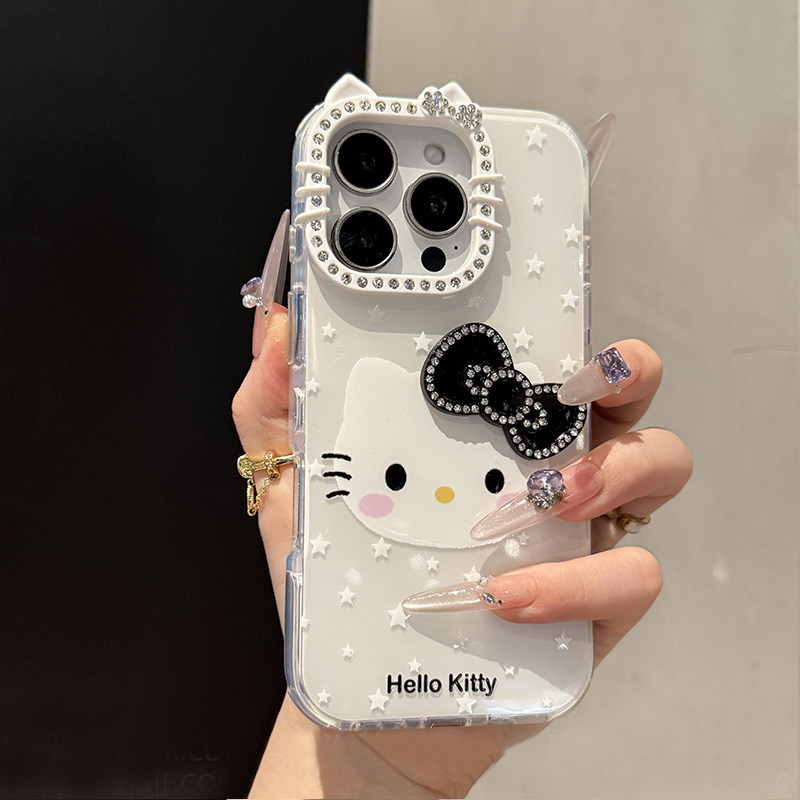 【高品质】领结猫咪适用iphone17promax手机壳新款高级感闪钻镜框苹果16Promax卡通15Por全包14防摔13保护套