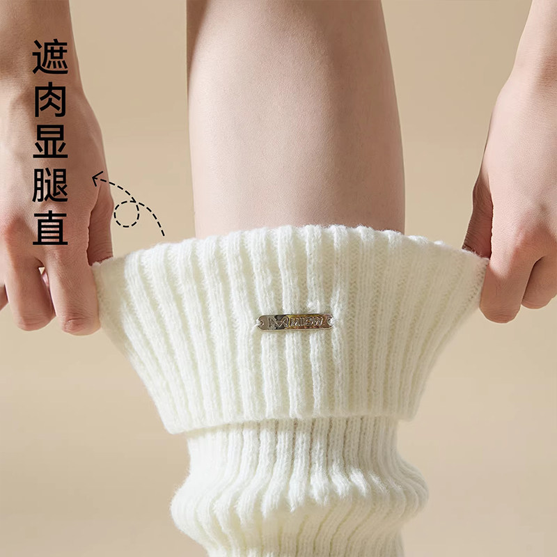 白色针织堆堆袜套女秋冬辣妹金属标加厚保暖小腿套中筒袜配雪地靴