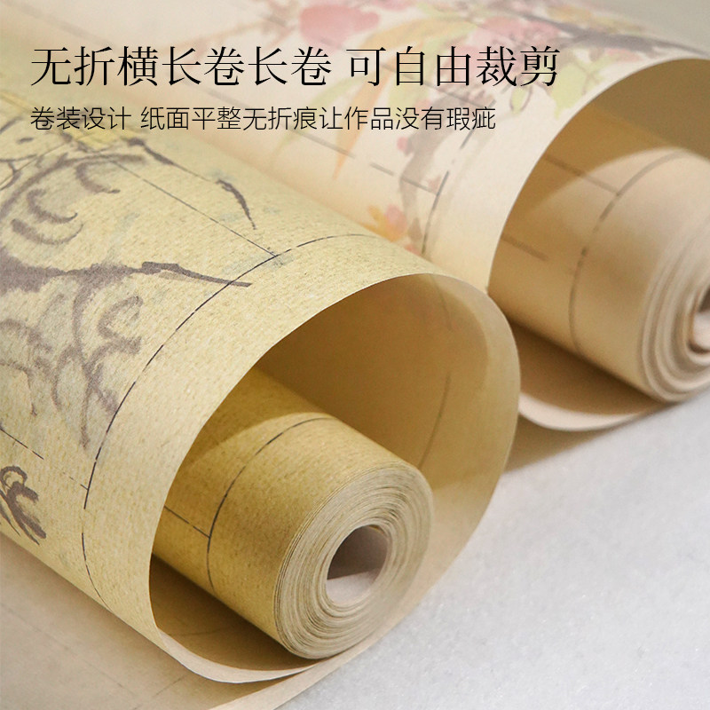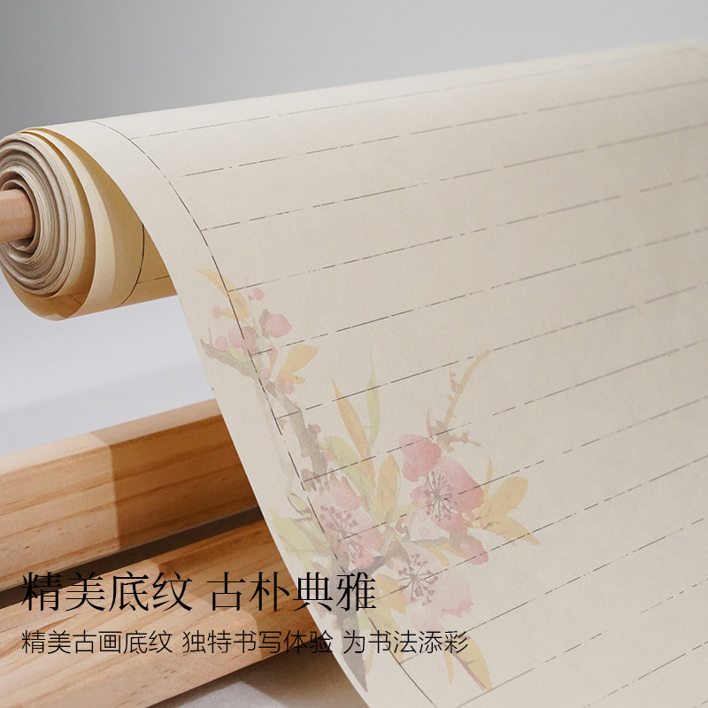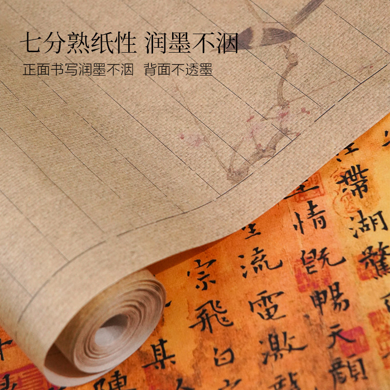 国风复古清欢系列长卷作品纸加厚宣纸半生半熟方格竖格小楷行草书法花鸟格子书法纸麻纹带格子景阳