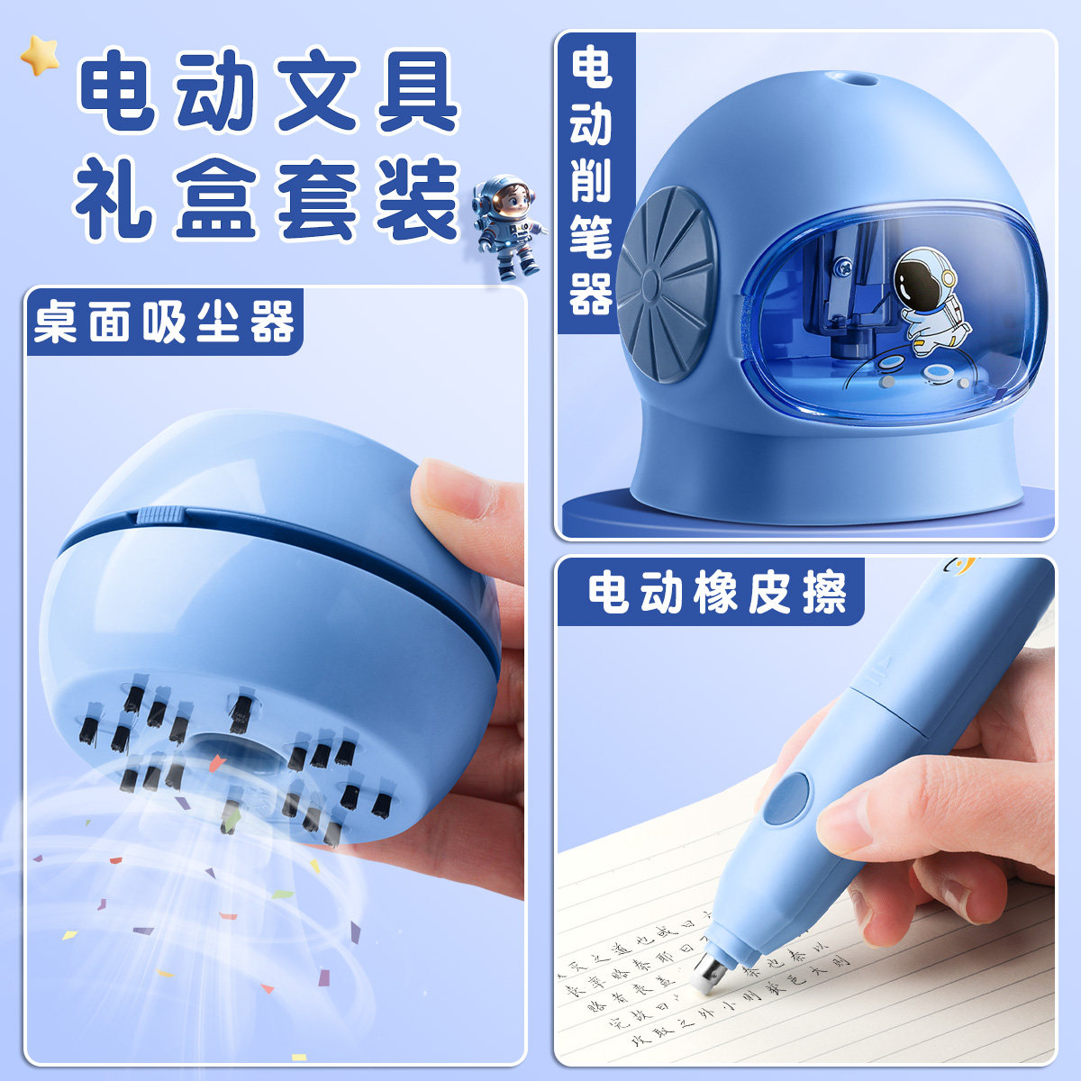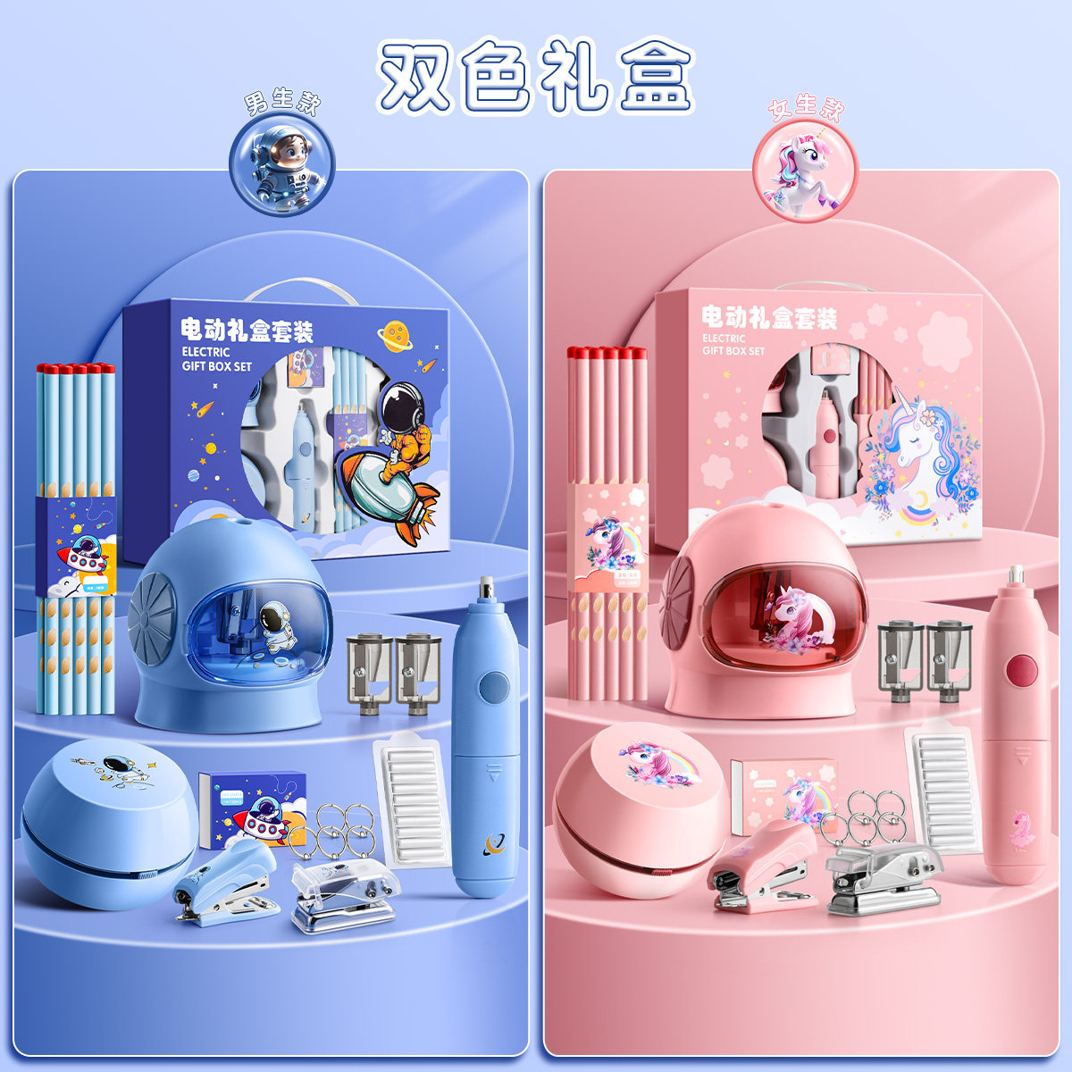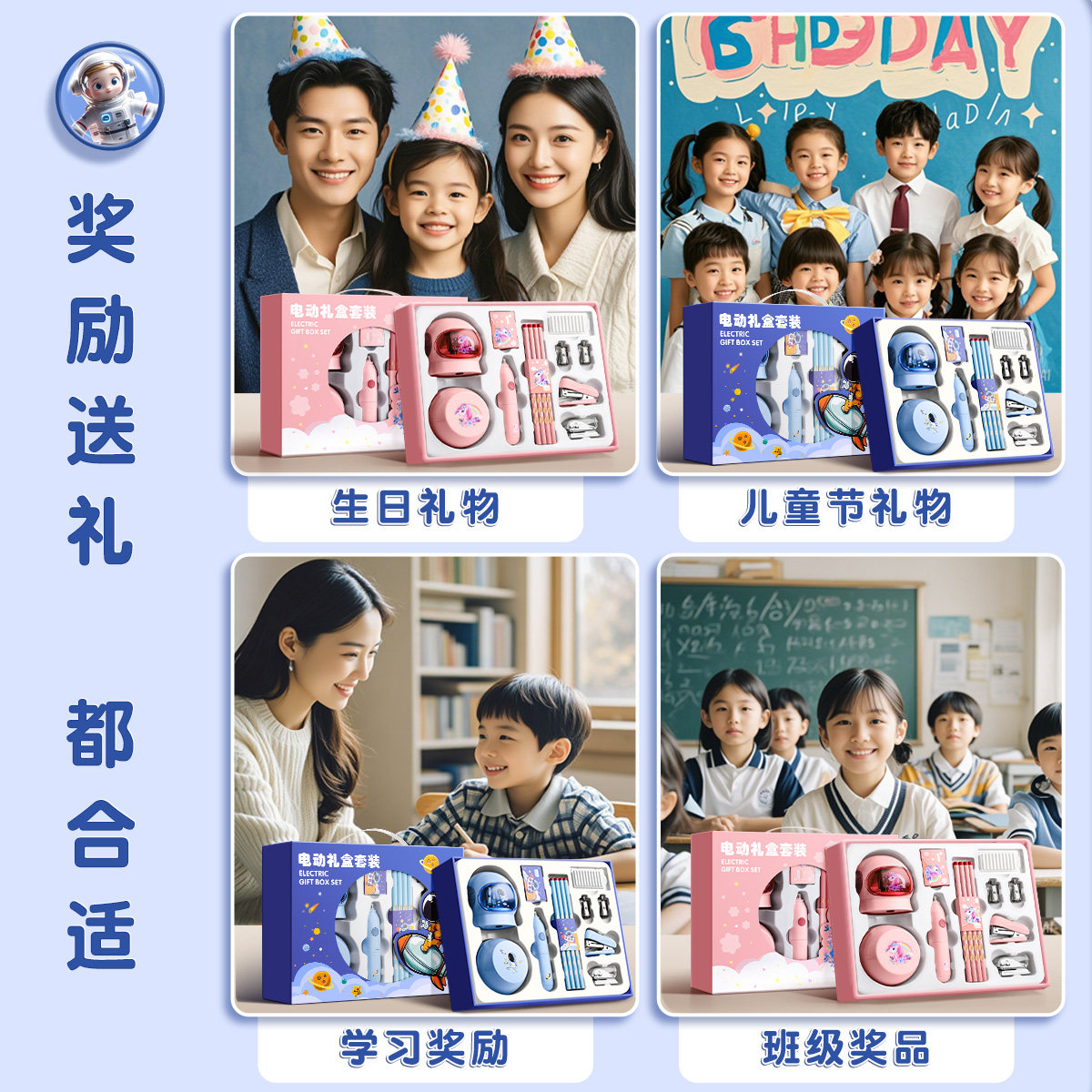 电动文具套装礼盒一二年级小学生开学大礼包男孩生日学习用品自动削笔器卷笔刀洞洞铅儿童女生六一儿童节礼物