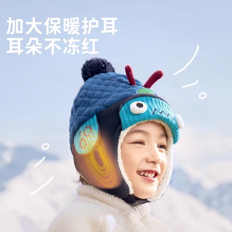 柠檬宝宝儿童帽子秋冬季加绒保暖小孩护耳帽子男童女孩雷锋帽冬天