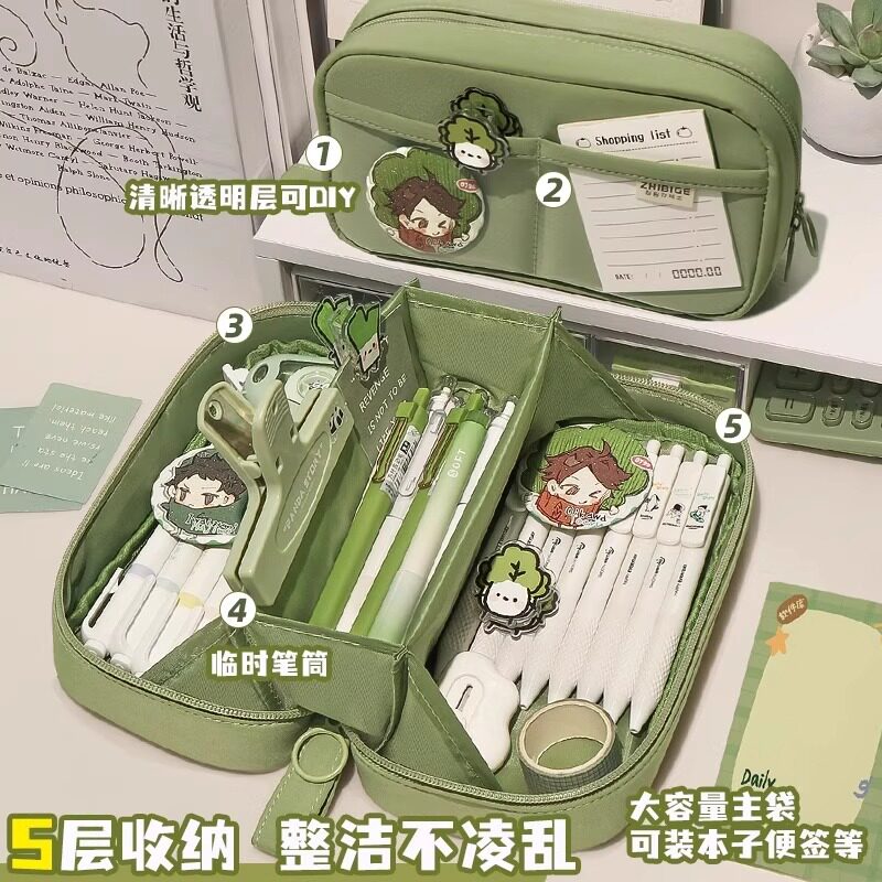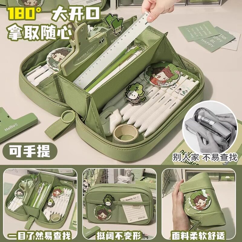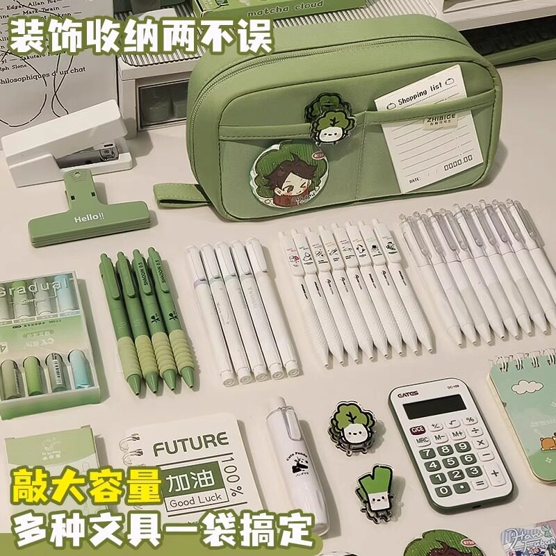 日系抹茶绿笔袋女孩款2026年新款高颜值ins风超大容量文具盒初中生铅笔盒简约绿色透明小学文具笔袋学习套装