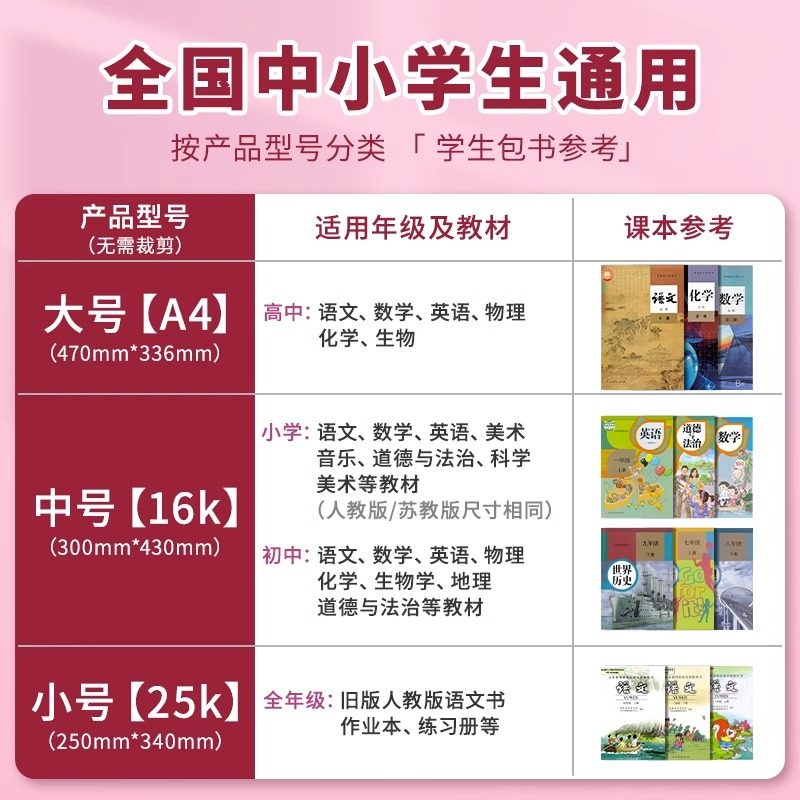 包书皮自粘透明磨砂书皮纸小学生专用一年级二三年级下册中号16k课本2026新款书本保护套书套包书膜全套贴纸