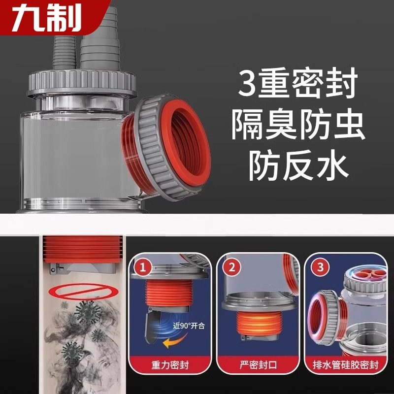 厨房下水管三通洗菜盆水槽五通净水器排水管道防返臭分水器防臭