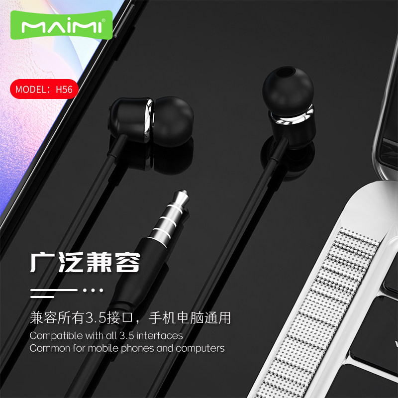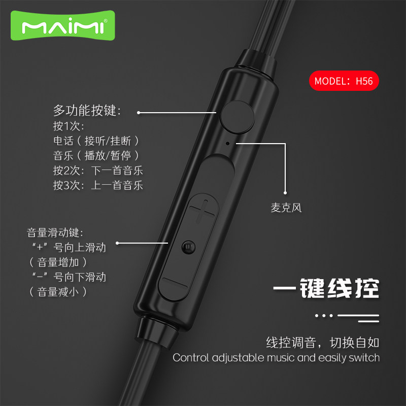 麦靡H56一键线控手机电脑灵动音里调节高音质立体环绕声3.5mm耳机
