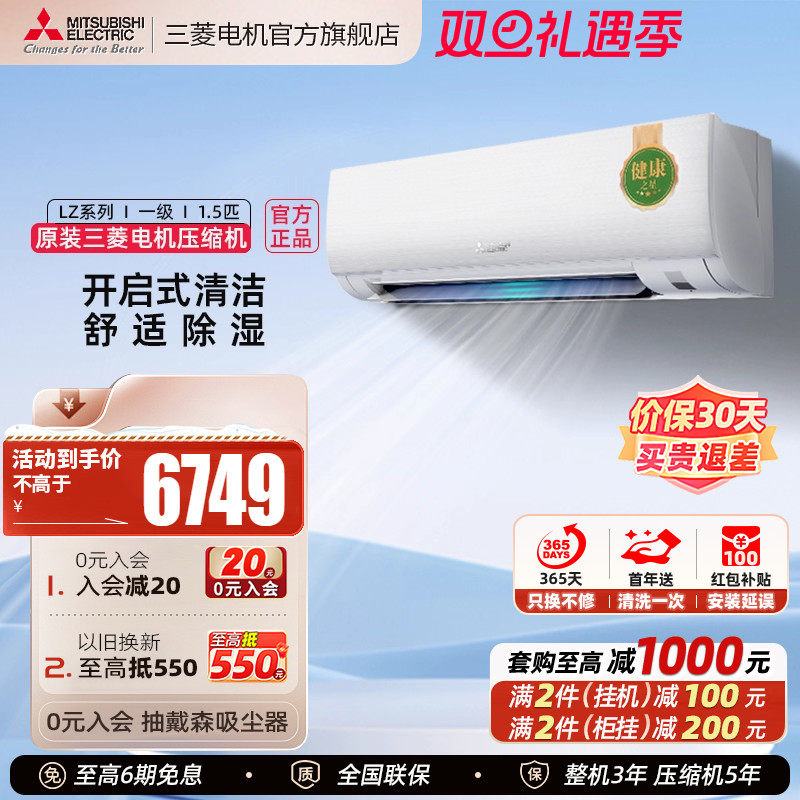 三菱电机MSZ-LZ12VF 1.5匹一级变频家用空调冷暖两用挂机菱之洁