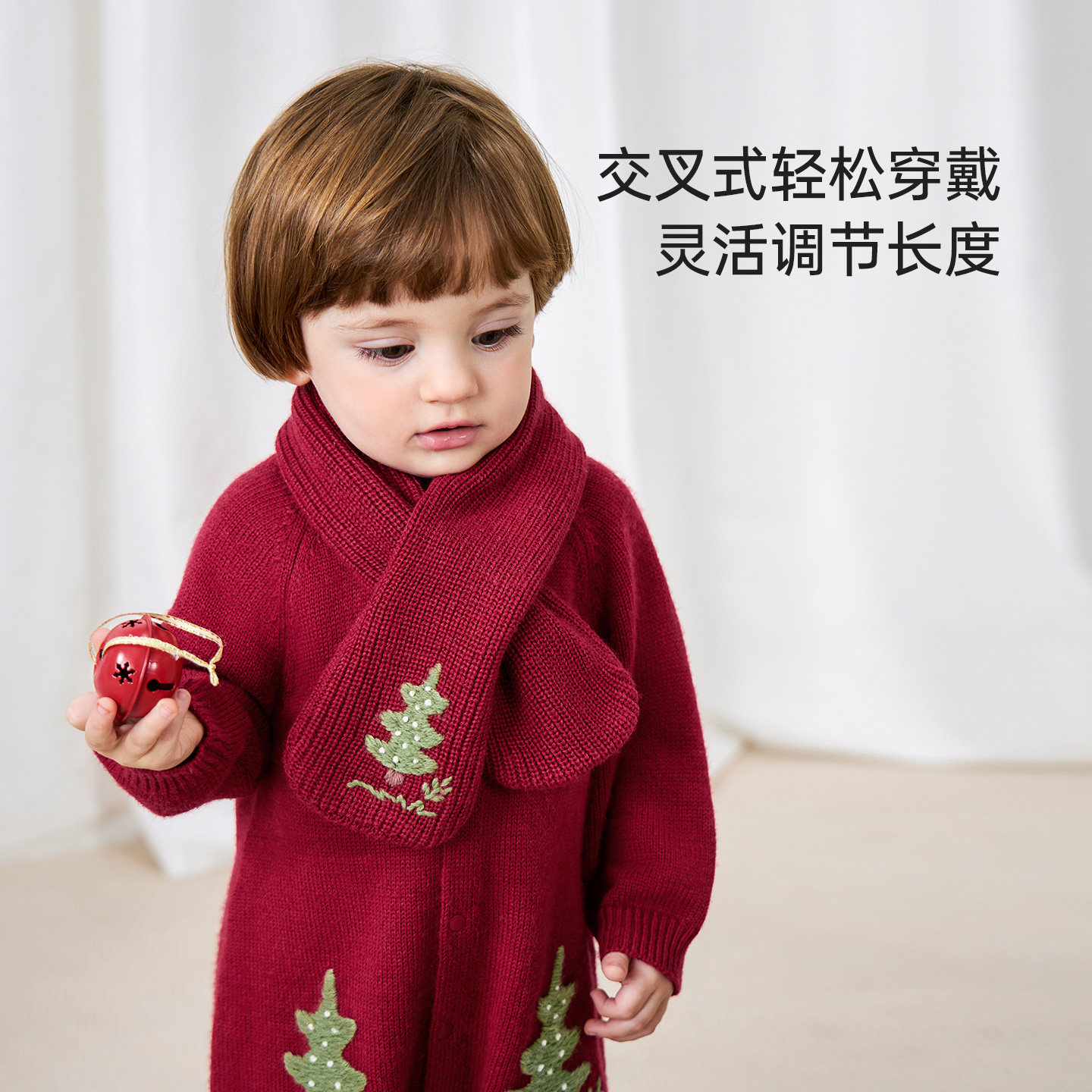 babylove婴儿针织围脖冬季羊毛保暖宝宝红色交叉式围巾浮翠流丹