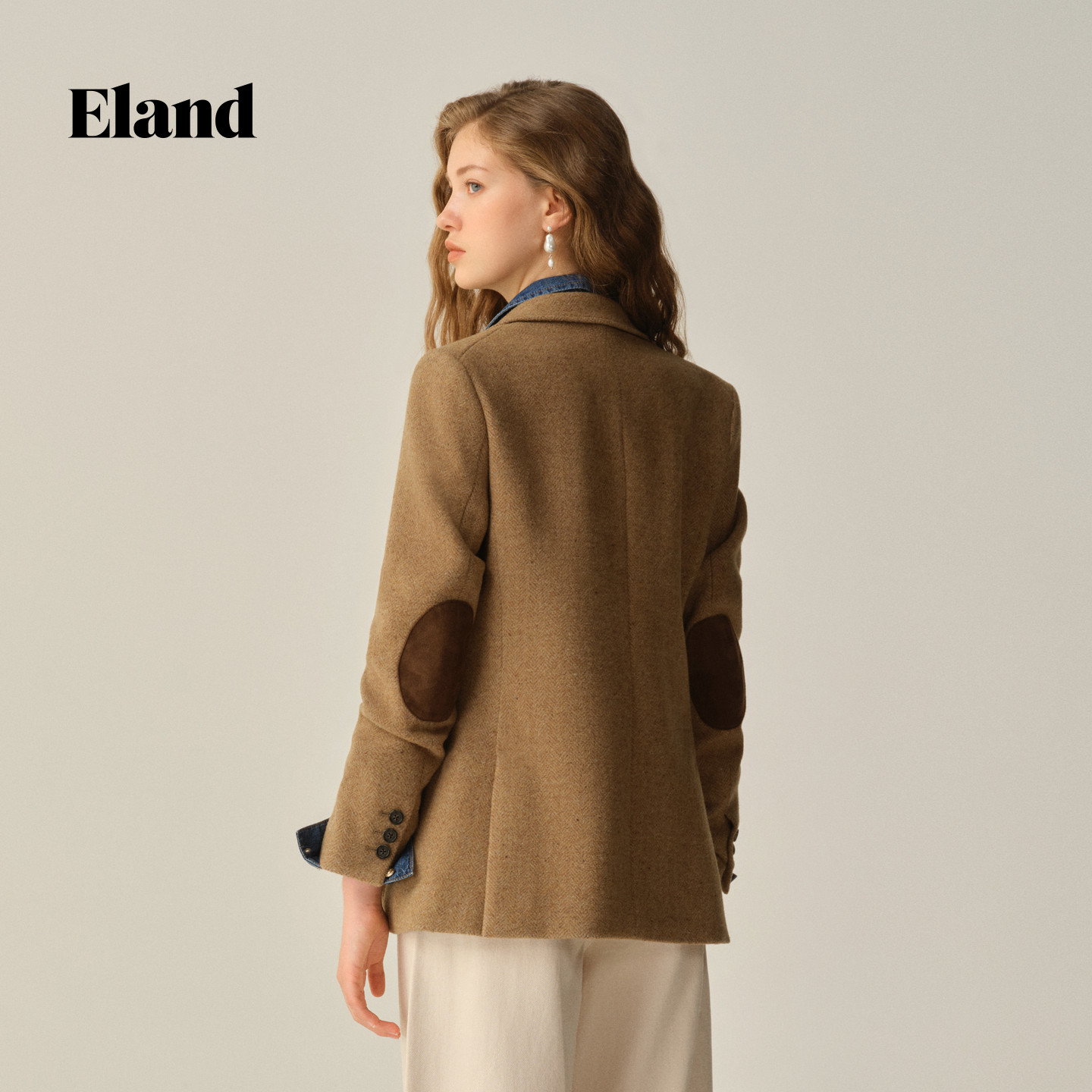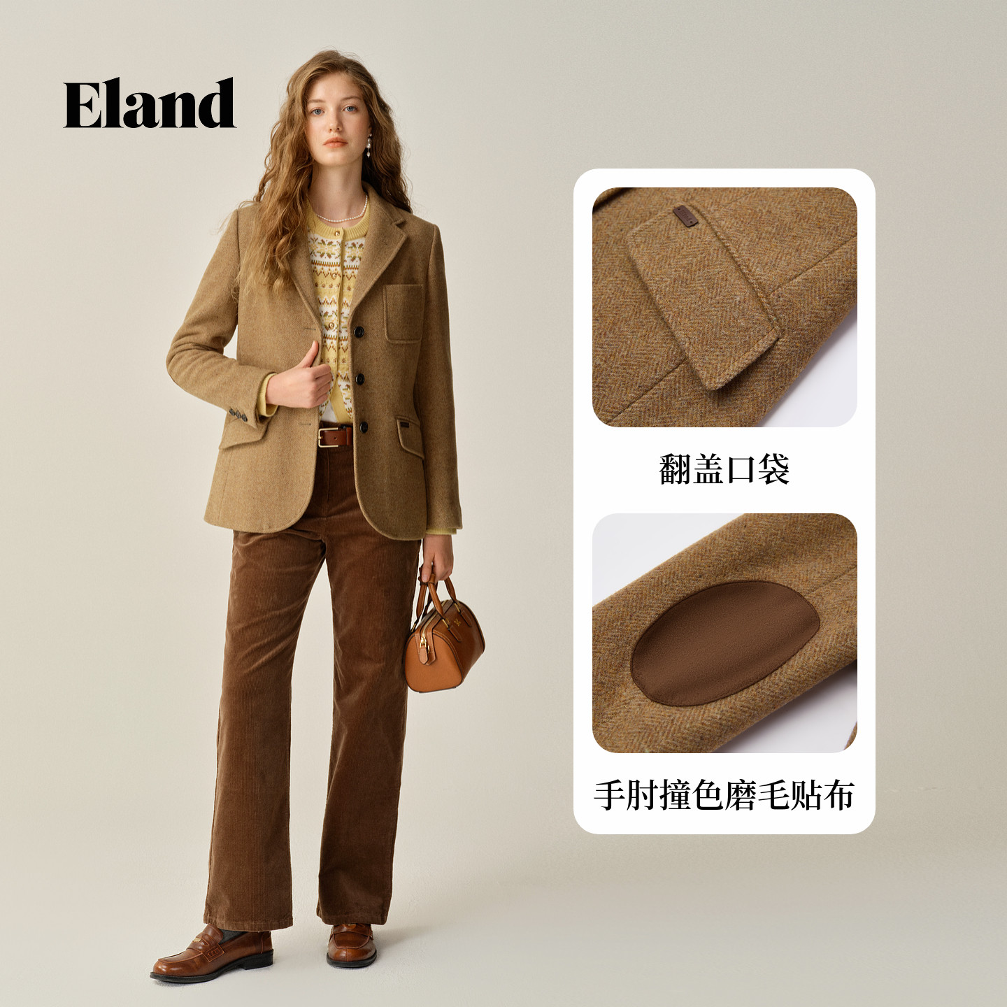 【100%美丽诺羊毛】Eland衣恋西装女通勤人字呢外套2025冬季新款