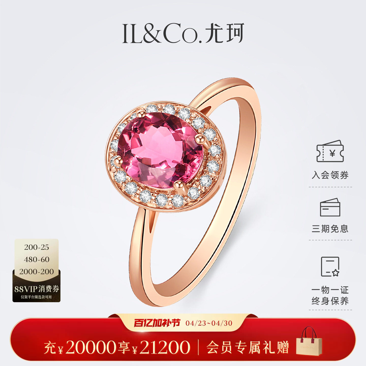 ILCO尤珂 红18K金天然彩色宝石戒指复古钻石镶嵌粉碧玺彩宝女款戒