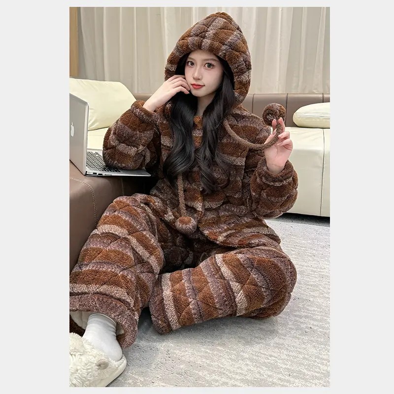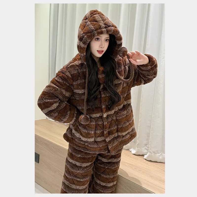 2025爆款三层夹棉睡衣女款秋冬季珊瑚绒棉袄女士可外穿家居服加绒