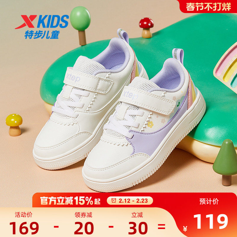 特步童鞋儿童板鞋女童魔术贴运动鞋中大童轻便耐磨鞋子女孩休闲鞋